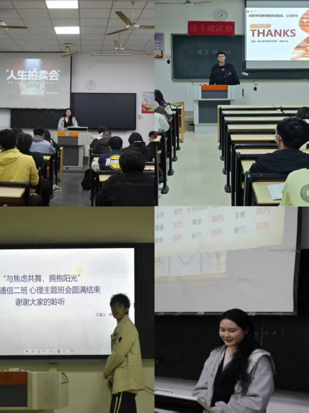土木工程系春季心理活动以专业干预与长效跟踪为核心,特邀心理咨询师线上解析压力来源,组织压力自评测试并提供个性化建议(如深呼吸法、慢跑减压)。活动中引入“四象限法则”与SMART目标原则,指导学生高效规划任务,现场书写并优化个人发展目标。为巩固成效,班级设立心理互助小组,定期监督目标进展,并通过公众号推送心理健康知识。数据显示,85%学生掌握压力管理技巧,80%能科学规划时间。一名学生感慨:“四象限法则让我不再被琐事淹没,目标分解后学习更有方向!”